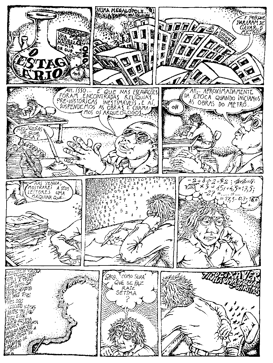Enganei vocês, aqui estou de volta!... Bem, só uma tira mística meio à la Moebius (tipo assim, a "garagem hermética..."), publicada no Condutor No. 9 (1979). Era para continuar, mas está esperando até agora, sabe... (escaneado da revista, formato A4):